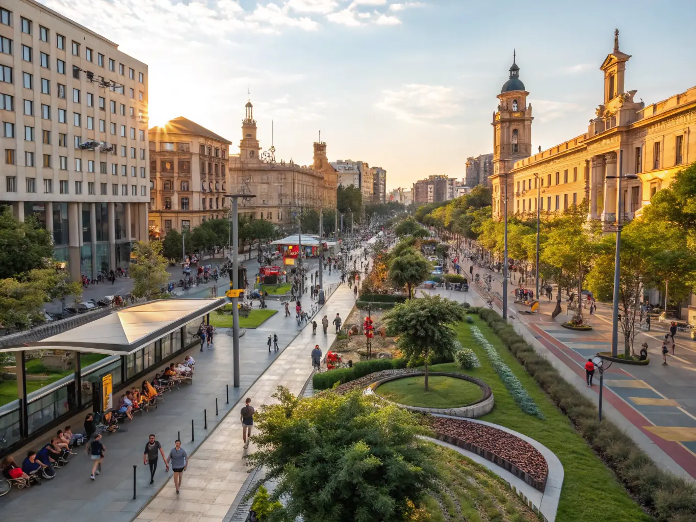 A revitalization project transforming a historic street into a sustainable, community-oriented space with new green infrastructure.